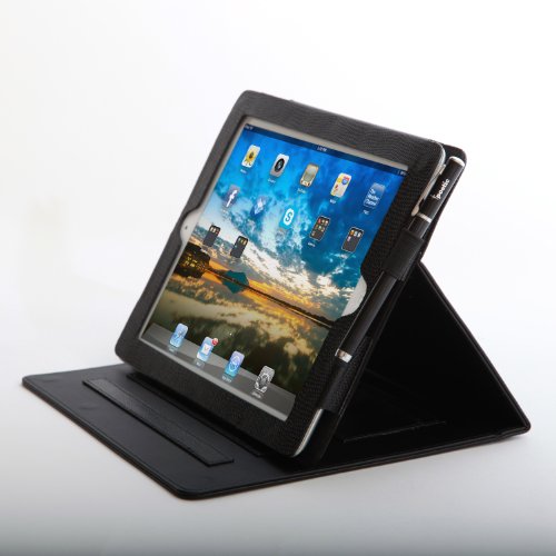 Poetic Downtown is an all-in-one stylish, professional, and functional case for the iPad 3. The exterior of the case is lined with a unique snakeskin like leather, giving the folio a sleek stylish night out on the town feel. The case has a silver accent on the bottom right corner of the front cover as well as on the spine of the folio giving it the upscale downtown look. The interior of the case is lined with a soft faux leather suede material protecting the iPads screen from potential scratches. The inner front cover of the case contains three stripes of faux leather providing multiple viewing positions when the back cover is in stand position. The inner back cover of the case contains a pocket like frame which the tablet slides into and can be securely closed, by a velcro tab which tucks under the tablet once it is securely placed into the pocket . The case provides a snug and secure placement for the iPad with the frame like pocket, but also manages to keep ports, buttons, and the camera unhindered for easy accessibility. The Downtown Folio not only provides protection to your iPad but also functionality with the multiple viewing options that it offers while the tablet is in landscape mode for typing or viewing purposes. Take your iPad in style wherever you go and keep it protected with the Downtown Folio from Poetic!
