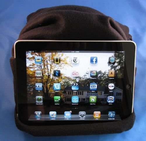 The iPad pillow. Whether you are home or traveling this is a perfect accessory for your iPad. It has been specifically designed with comfort in mind. Whether you are in bed, on the couch, or on a plane the pillow will hold your iPad both vertically and horizontally. Just slide it in and set it where you would like. Position your iPad to what you wish, its versatile design allows dozens of different angles if not more and works on all surfaces. The iPad Pillow made in the USA. Designed by an iPad user, it is simple, yet perfect. It works with most tablets and ereaders as well.We have gone back to the original design due to demand. The pillow now has removable weight and a zippered pouch for storage. Can be clipped to luggage or even used as a bag using the rungs sewn into the pillow.